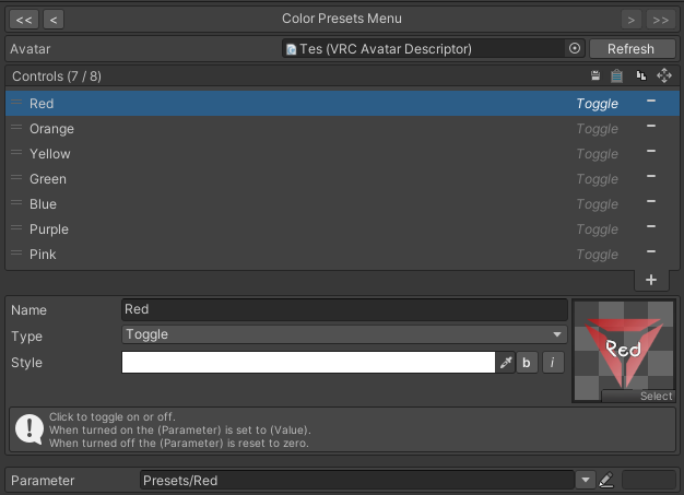 - Assign the Parameter to the chosen parameter (All presets are in this format